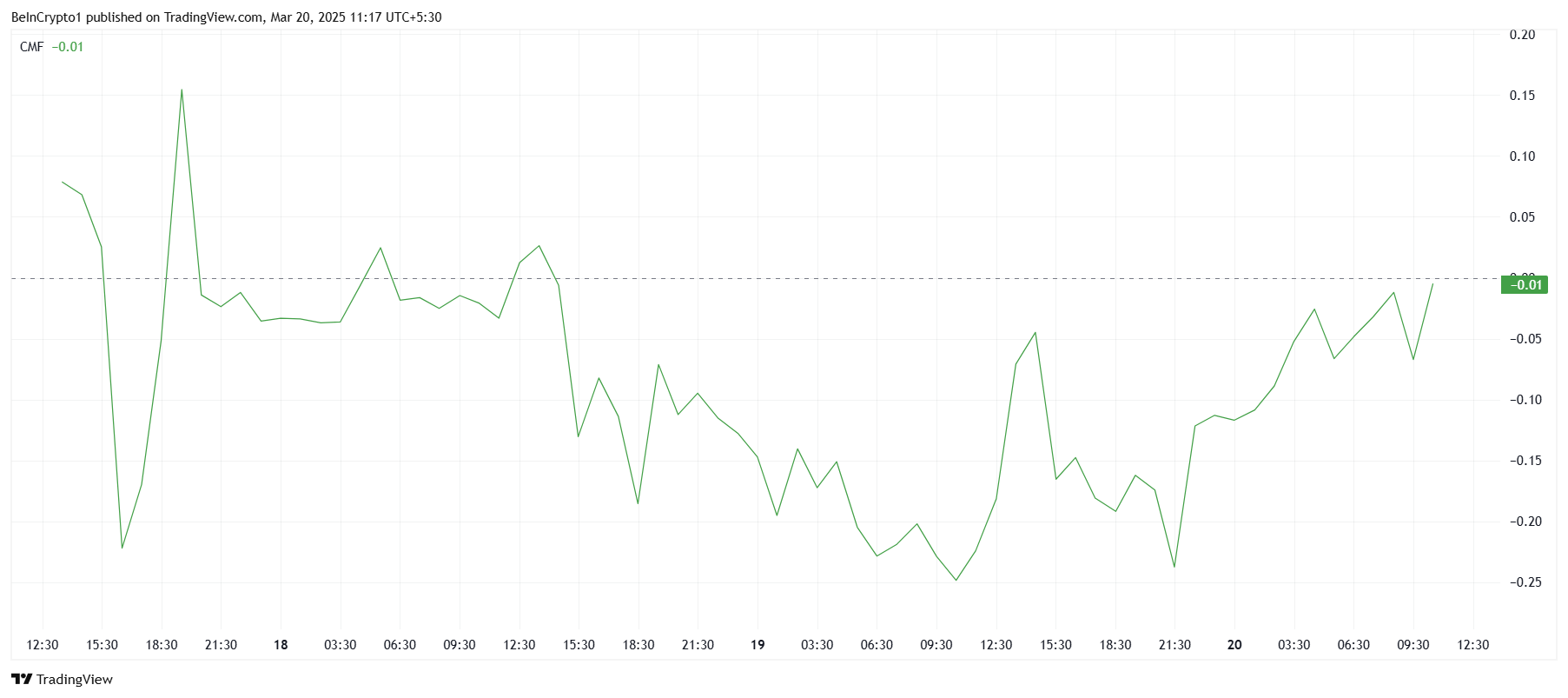 O Chaikin Money Flow (CMF) da altcoin mostrou recentemente um aumento, sinalizando uma mudança no comportamento dos investidores. Nas últimas horas, os influxos superaram os saques, sugerindo uma perspectiva positiva para o mercado.