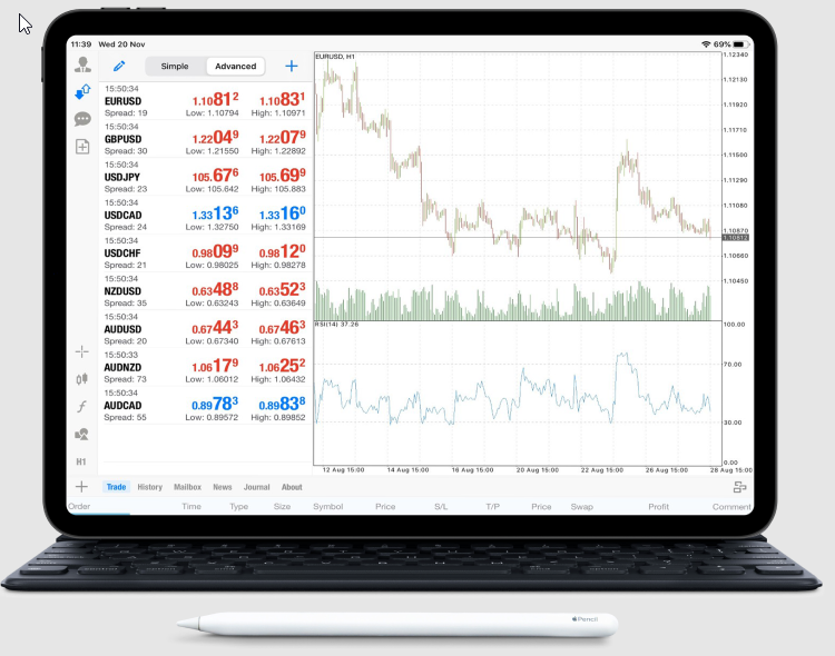 O WebTrader e os aplicativos da T1Markets são desenvolvidos pelo MetaTrader4 (MT4), que é indiscutivelmente a melhor plataforma de trade virtual da atualidade. O MT4 possui uma série de recursos interessantes, como 30 indicadores técnicos e fundamentais integrados (retrações MA e Fibonacci, por exemplo), ferramentas de gráficos, execução rápida de trades e vários modos de negociação.