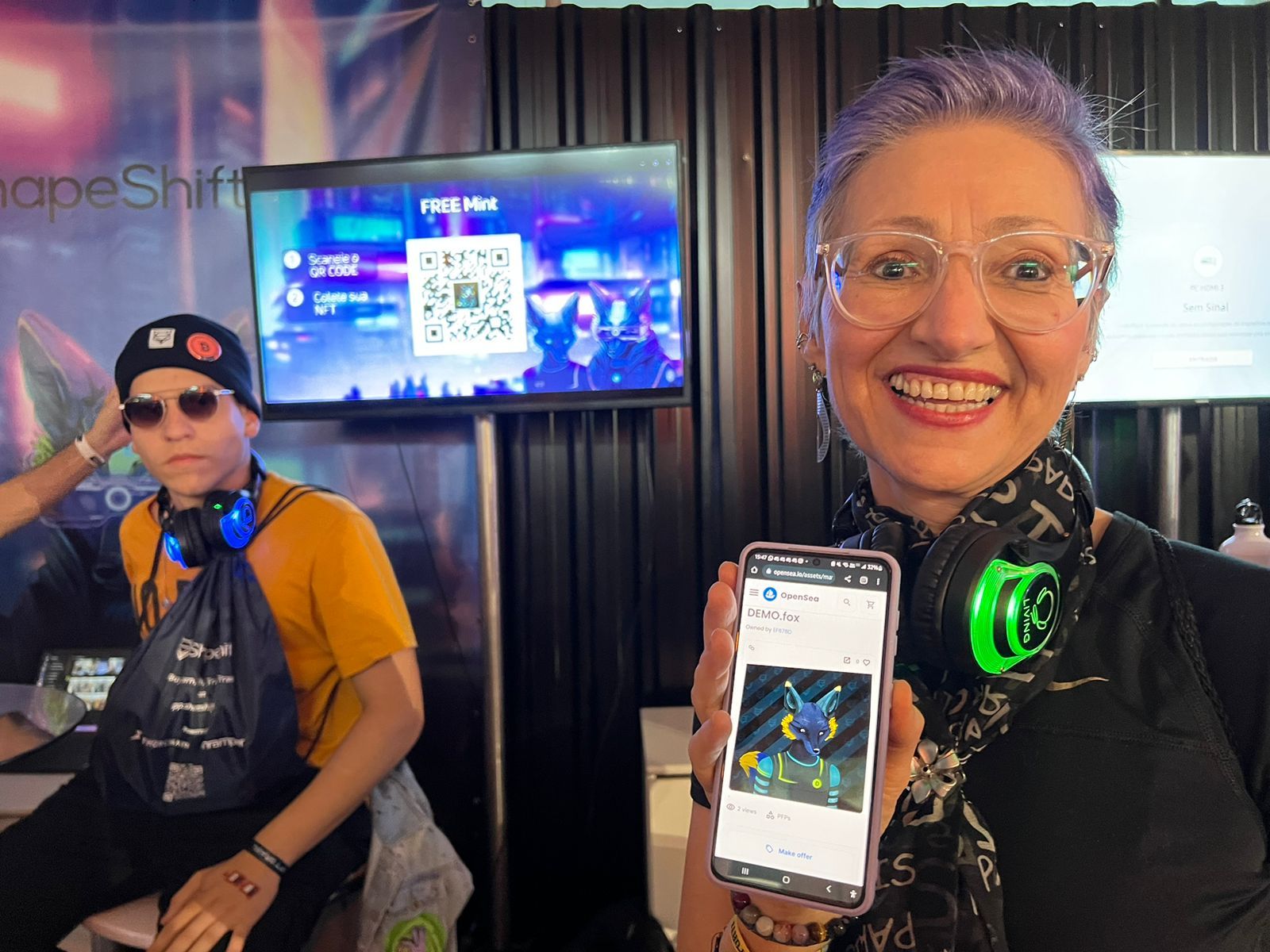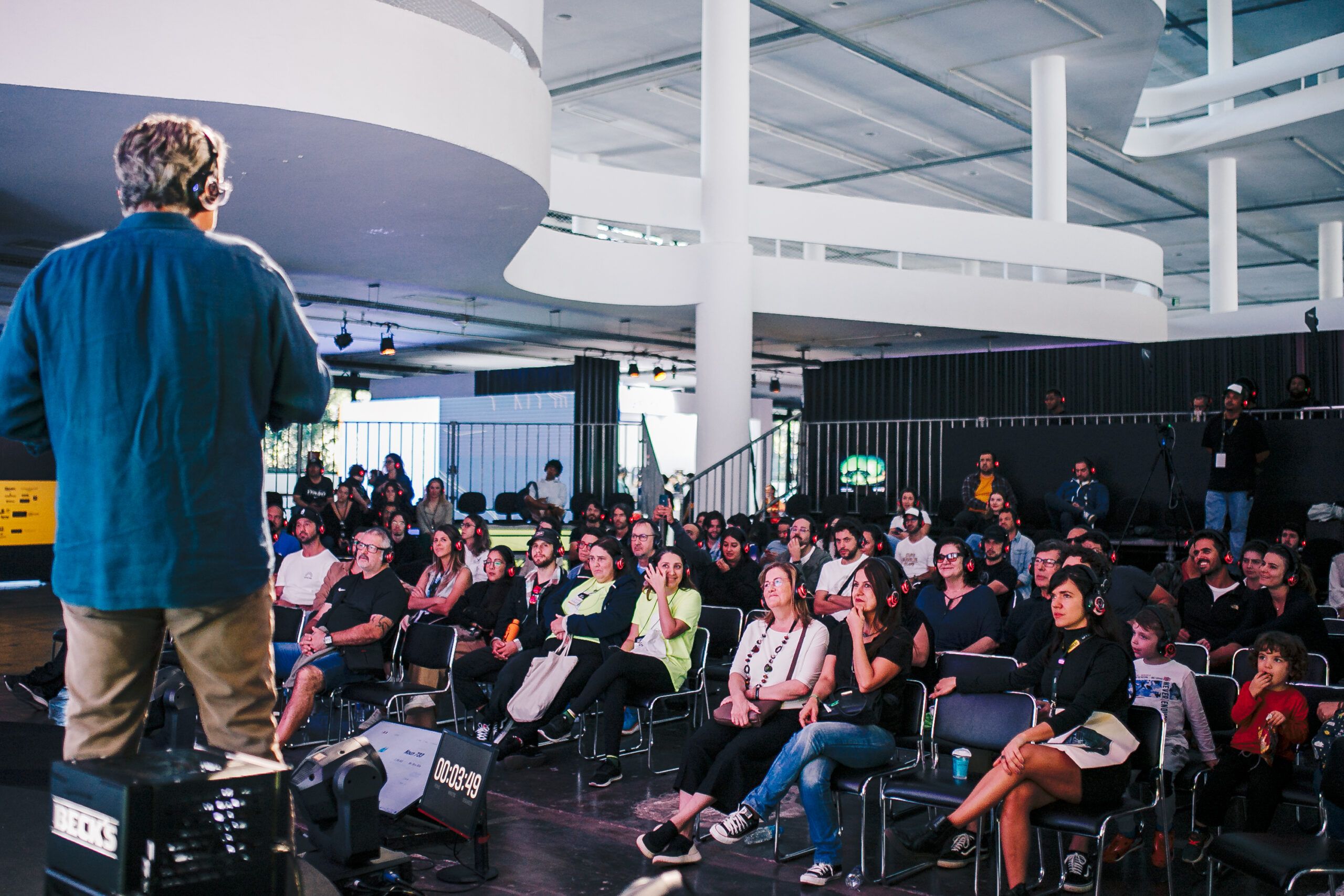 Com conteúdo e palestrantes relevantes em três palcos diferentes e simultâneos, a produção da NFT.Brasil disponibilizou um fone sem fio para ouvir os talks. O que chamou a atenção foi a qualidade do equipamento, já que era possível acompanhar um painel de qualquer lugar do Pavilhão da Bienal e sem qualquer interferência de ruído.