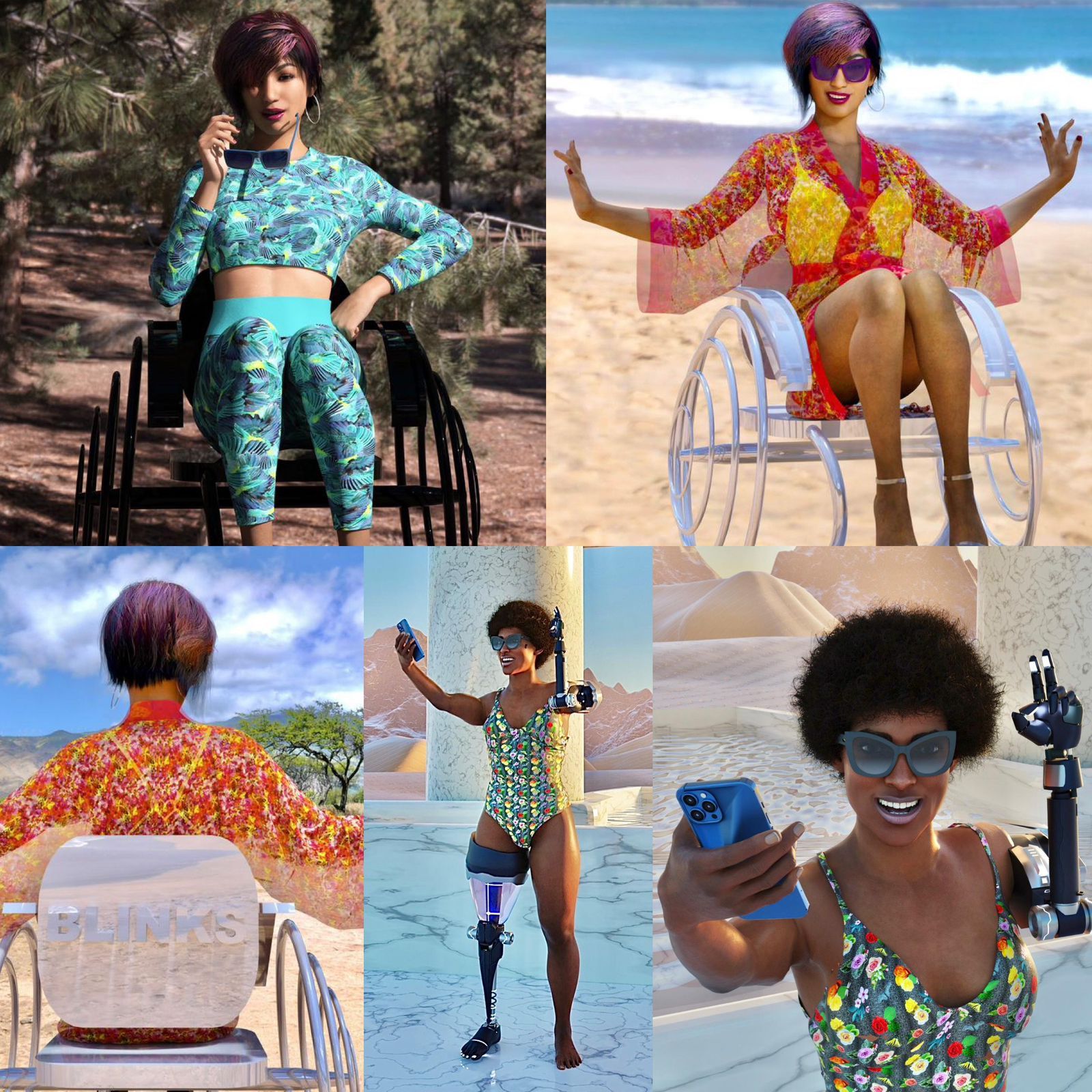 SponsoredA coleção figital da artista tem duas modelos. Uma CGI (sigla em inglês para o termo Computer Graphic Imagery, ou seja, imagens geradas por computador, ou o conhecido avatar) e uma PCD (pessoa com deficiência) para modelar suas roupas e acessórios digitais.