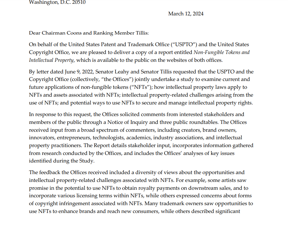 Solicitado pelo Congresso americano, o levantamento quis aprofundar e entender melhor a convergência dos NFTs com as leis de propriedade intelectual (PI) existentes.