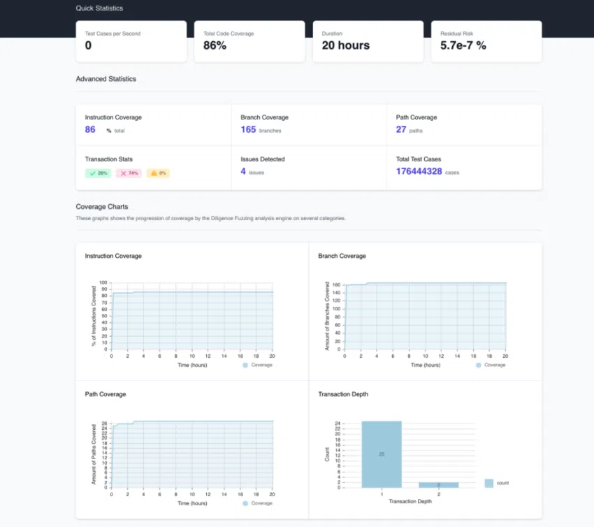 O fuzzer pode simular sequências de transações para examinar as interações entre as funções. Além disso, a ferramenta pode criar três relatórios que oferecem informações diferentes sobre a funcionalidade do dApp.