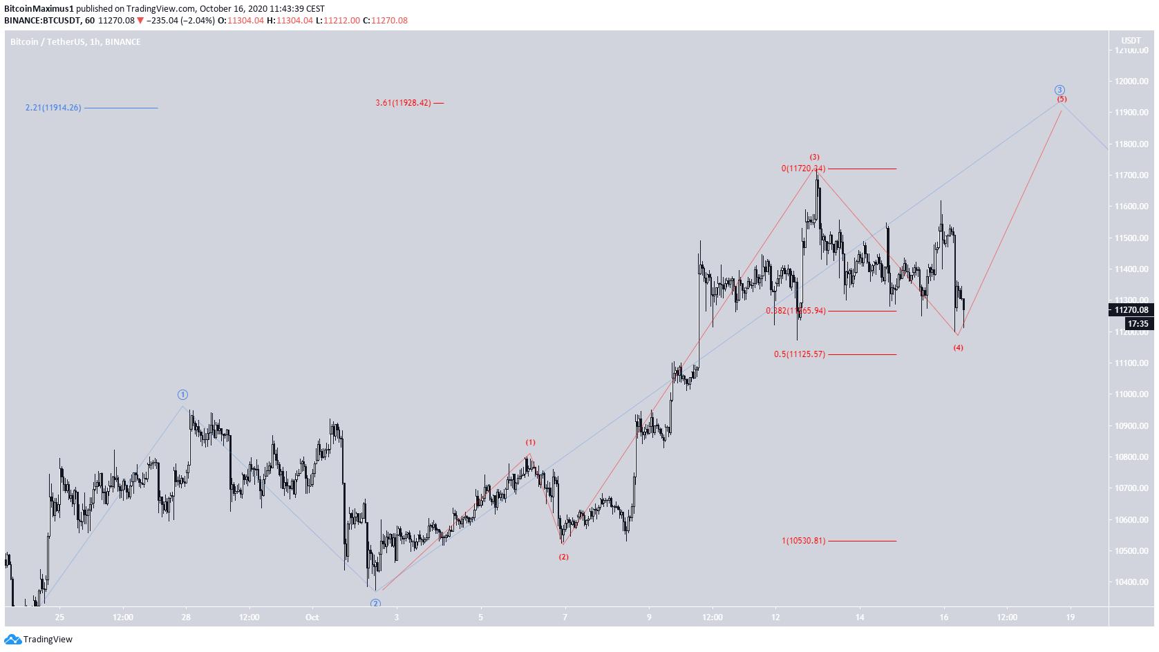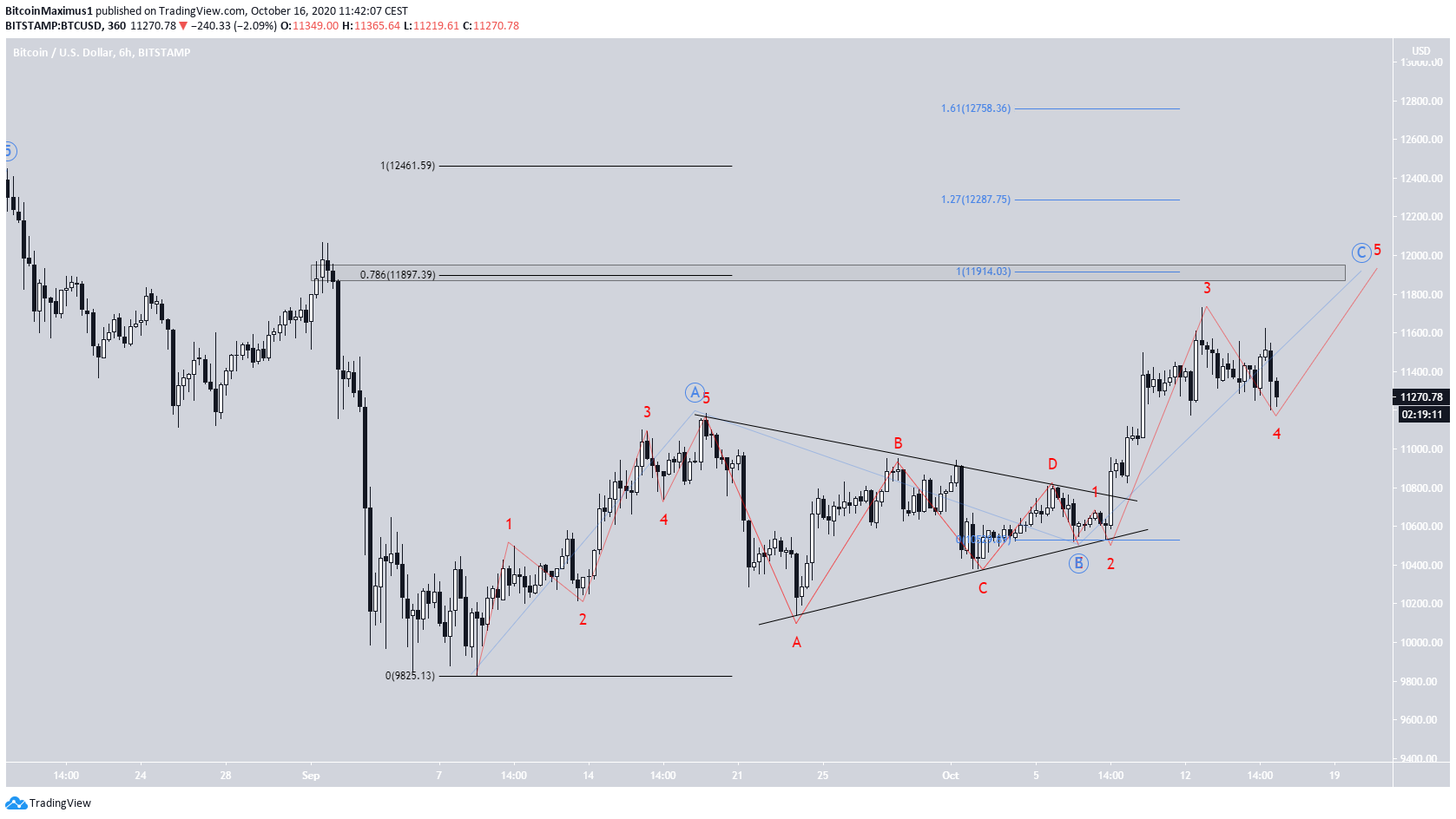 “Se a contagem estiver correta, o preço pode subir para $ 11.918 e $ 12.231 para completar a onda 5.”