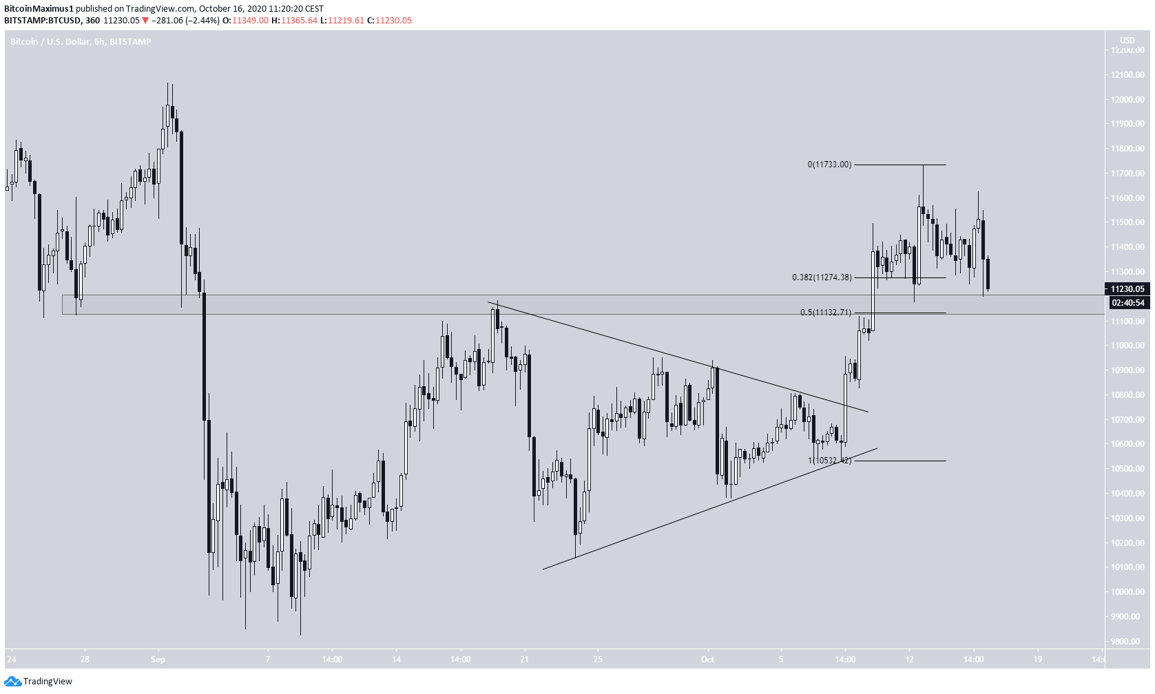 O preço do BTC tem subido desde o rompimento de um triângulo simétrico no dia 9 de outubro, atingindo um topo de $ 11.731 no dia 12 de outubro.