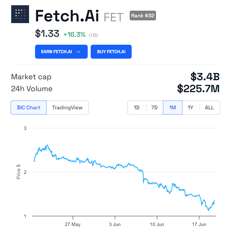 O sucesso da Nvidia também impactou o mercado cripto. Isso porque as principais criptomoedas com tema de IA, incluindo Fetch.AI (FET) e Render (RNDR), aumentaram substancialmente nas últimas 24 horas.