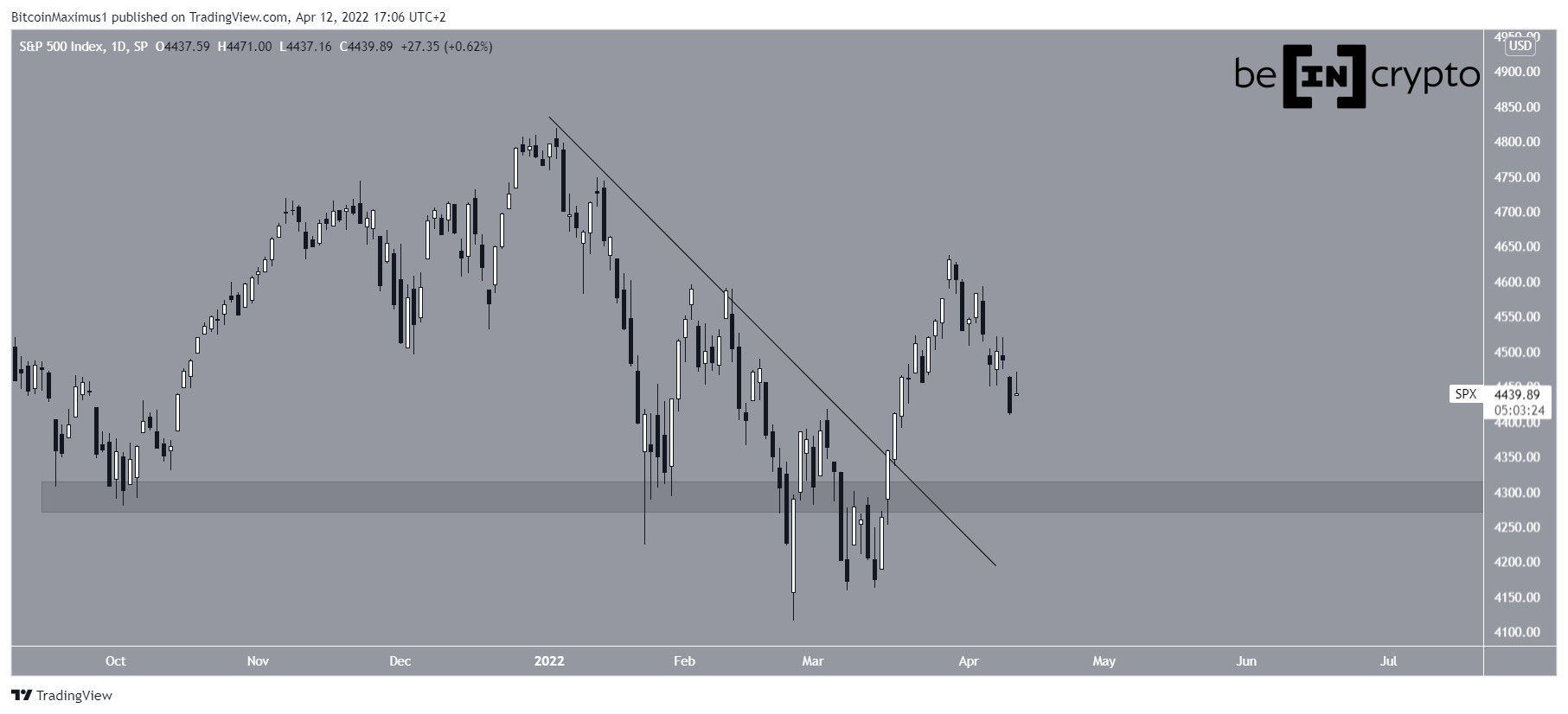 SPX vem caindo desde então e está potencialmente retornando à área de US$ 4.300 mais uma vez. Espera-se que a área forneça suporte.