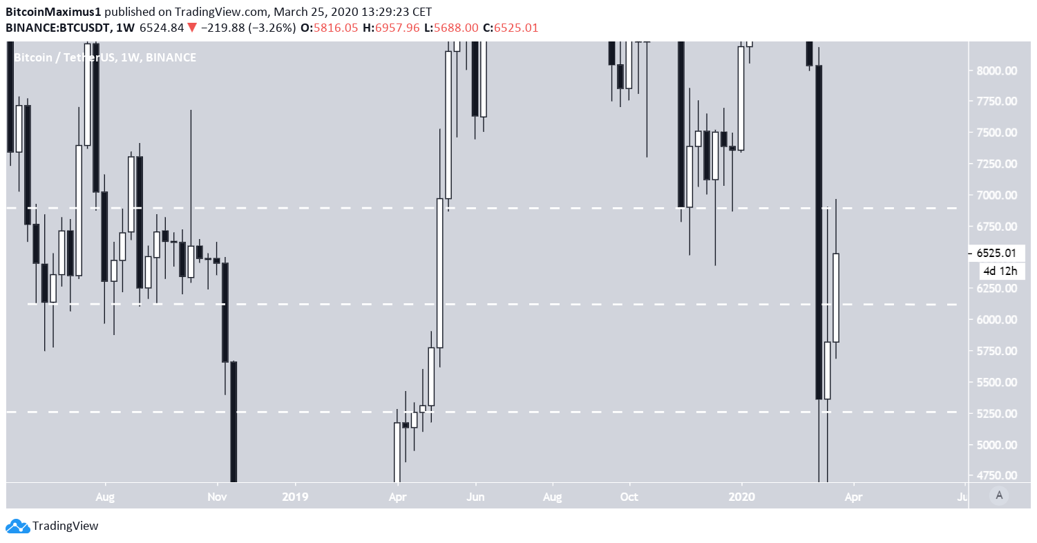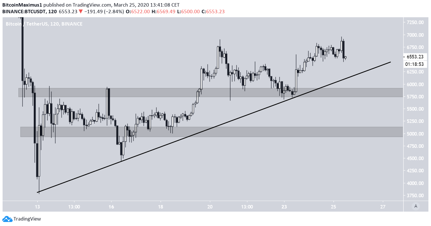 O preço do Bitcoin tem aumentado desde que atingiu uma mínima de US $ 3.782 em 13 de março. Atingiu a área de US $ 6.850 duas vezes, nos dias 19 e 25 de março, mas não conseguiu romper nas duas vezes.