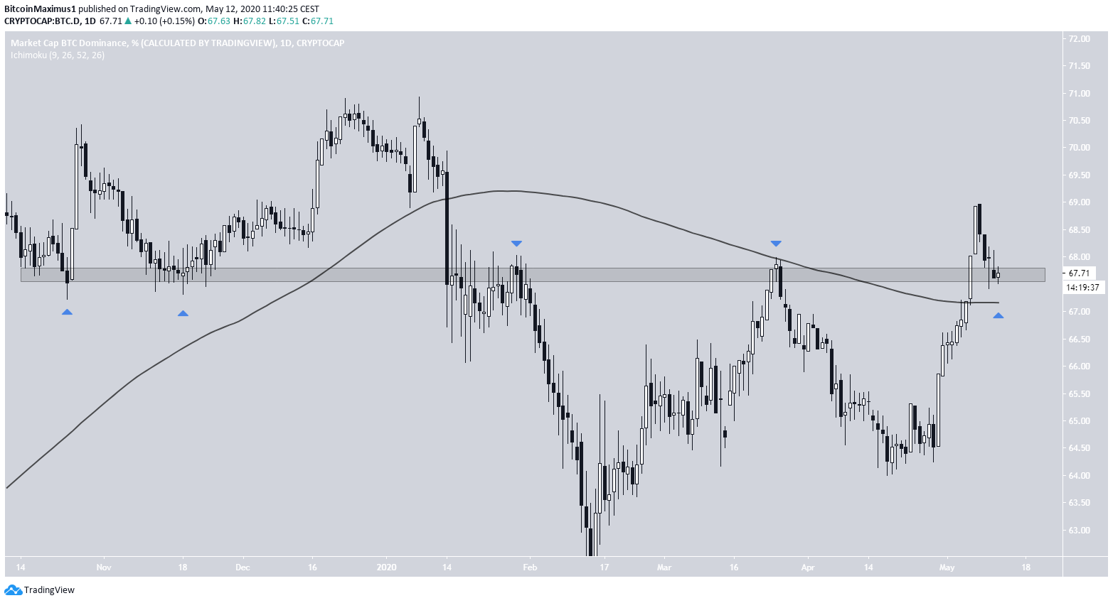 Em 6 de maio, o Bitcoin aumentou sua taxa de dominância acima da área de 68% pela primeira vez desde 14 de janeiro.