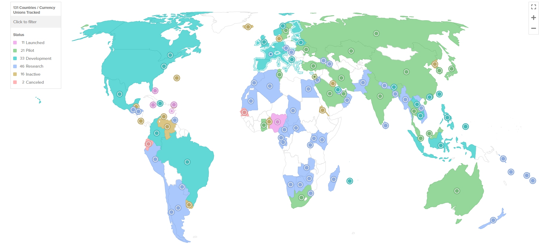 19 nações do G20 estão em fase avançada de desenvolvimento da CBDC. Destes, 9 já estão na etapa piloto.