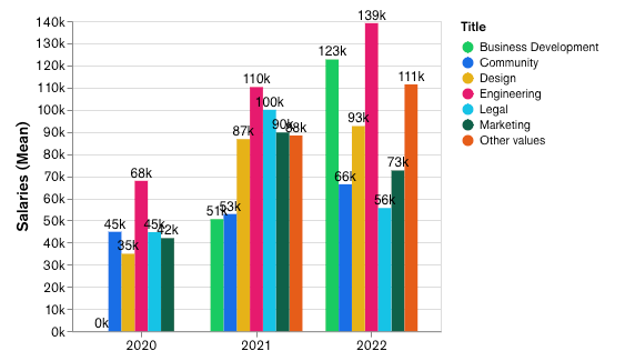 O salário médio de um desenvolvedor cripto de US$ 146.250 não está muito longe do nível executivo. Desenvolvedores mais experientes podem ganhar até US$ 185.250 por ano.