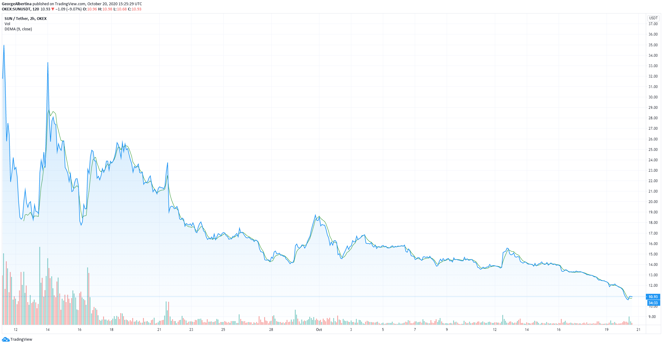 O único problema é que o valor do token SUN caiu com o tempo, levando o valor dessas recompensas junto com ele.