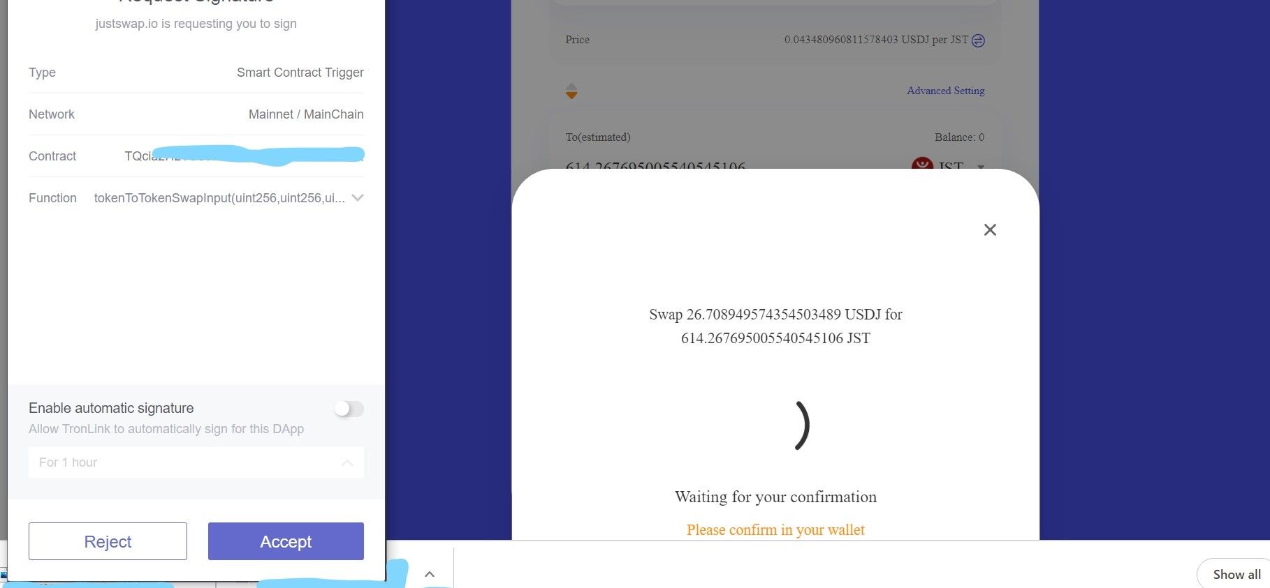 A experiência semelhante e sem brilho se estende ao Criador de Mercado Automático da Tron “JustSwap”. As taxas de transação, que giram em torno de 1 TRX ($ 0,26, até o momento), são mais baixas do que na Ethereum, e a maioria das transações leva apenas alguns segundos.