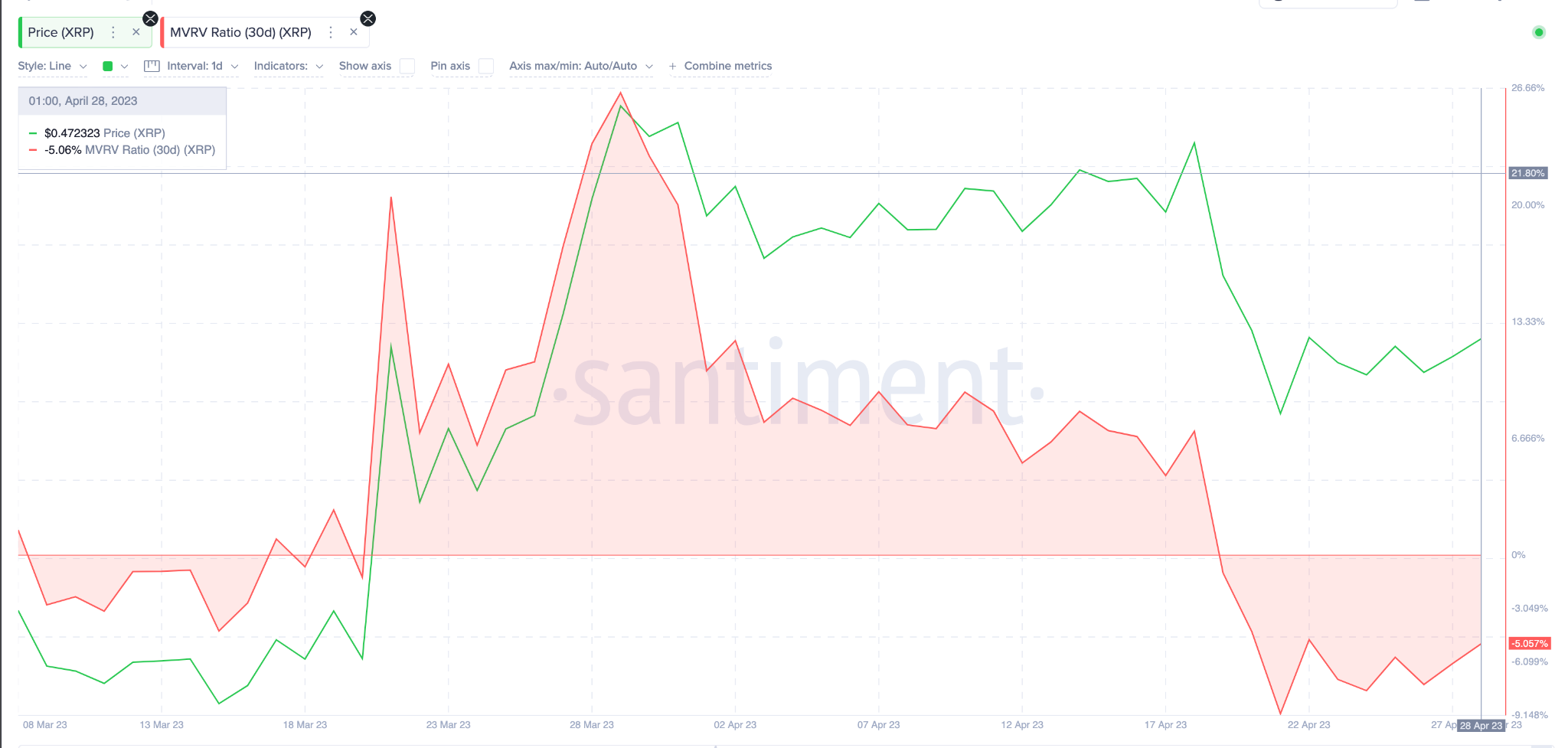Na semana passada, os detentores de XRP otimistas defenderam o nível de suporte de US$ 0,45. E de acordo com os dados de valor de mercado para valor realizado (MVRV) da Santiment, uma recuperação de alta pode agora estar nos cartões