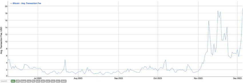 SponsoredOntem, a média das taxas era de US$ 19,48, considerada alta para uma interação regular com a blockchain do Bitcoin.