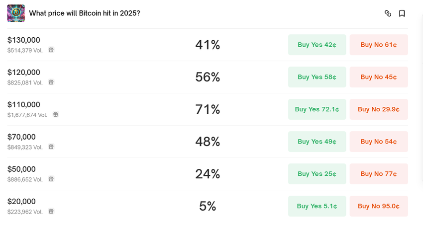 Ao mesmo tempo, 60% dos usuários do mercado de previsão da Polymarket estão confiantes de que o Bitcoin atingirá US$ 100 mil em maio de 2025 .