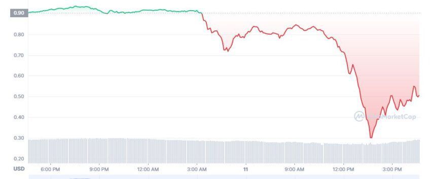 Nesta quarta-feira (11), após outro crash, o UST caiu para US$ 0,29. No fechamento dessa matéria, o token foi corrigido para US$ 0,32.