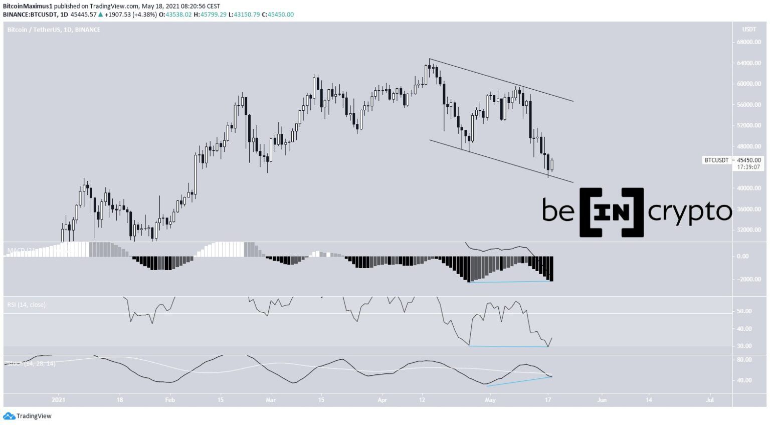 O Bitcoin tem se movido para baixo em um ritmo acelerado desde 10 de maio. A redução levou o preço até a mínima local de US$ 42.000 na última segunda-feira (17).