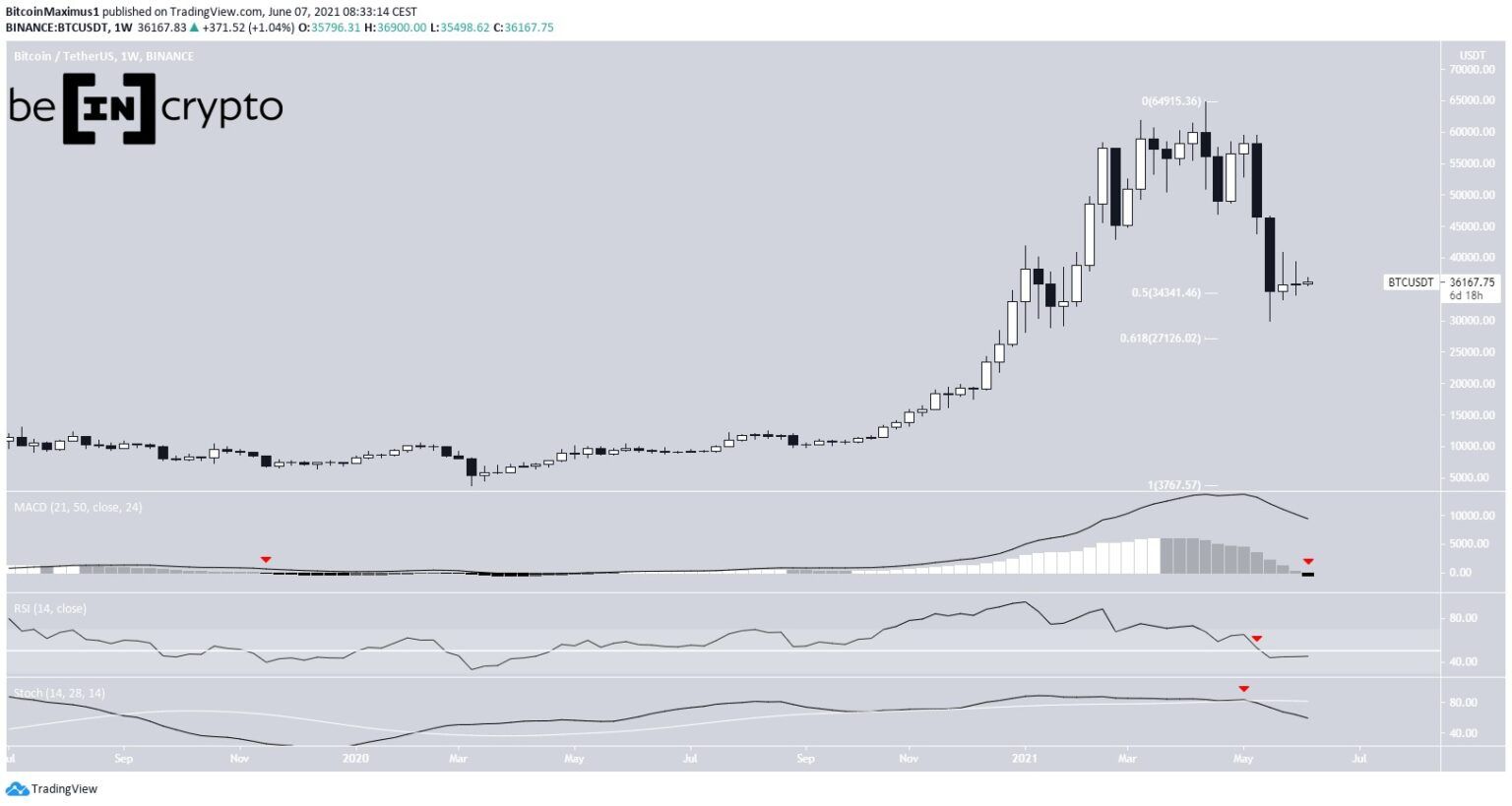 Atualmente, o BTC está sendo negociado no nível de suporte de retração de 0,5 de Fibonacci a US$ 34.340. O próximo suporte está em US$ 27.125, que é o nível de suporte de 0,618 da retração de Fibonacci.