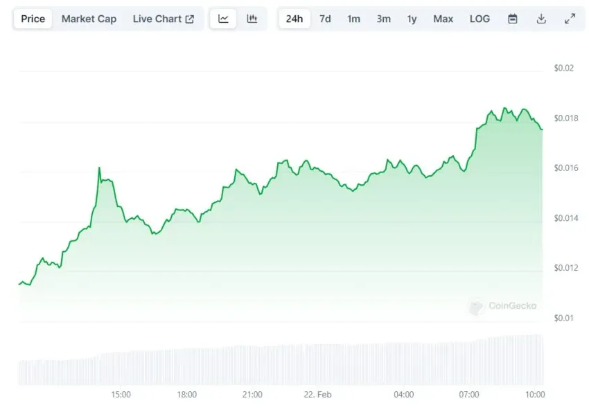 SponsoredA capitalização da criptomoeda é de US$ 860 milhões. O volume de negociação nas últimas 24 horas subiu 104% e ultrapassou US$ 1,6 bilhão.