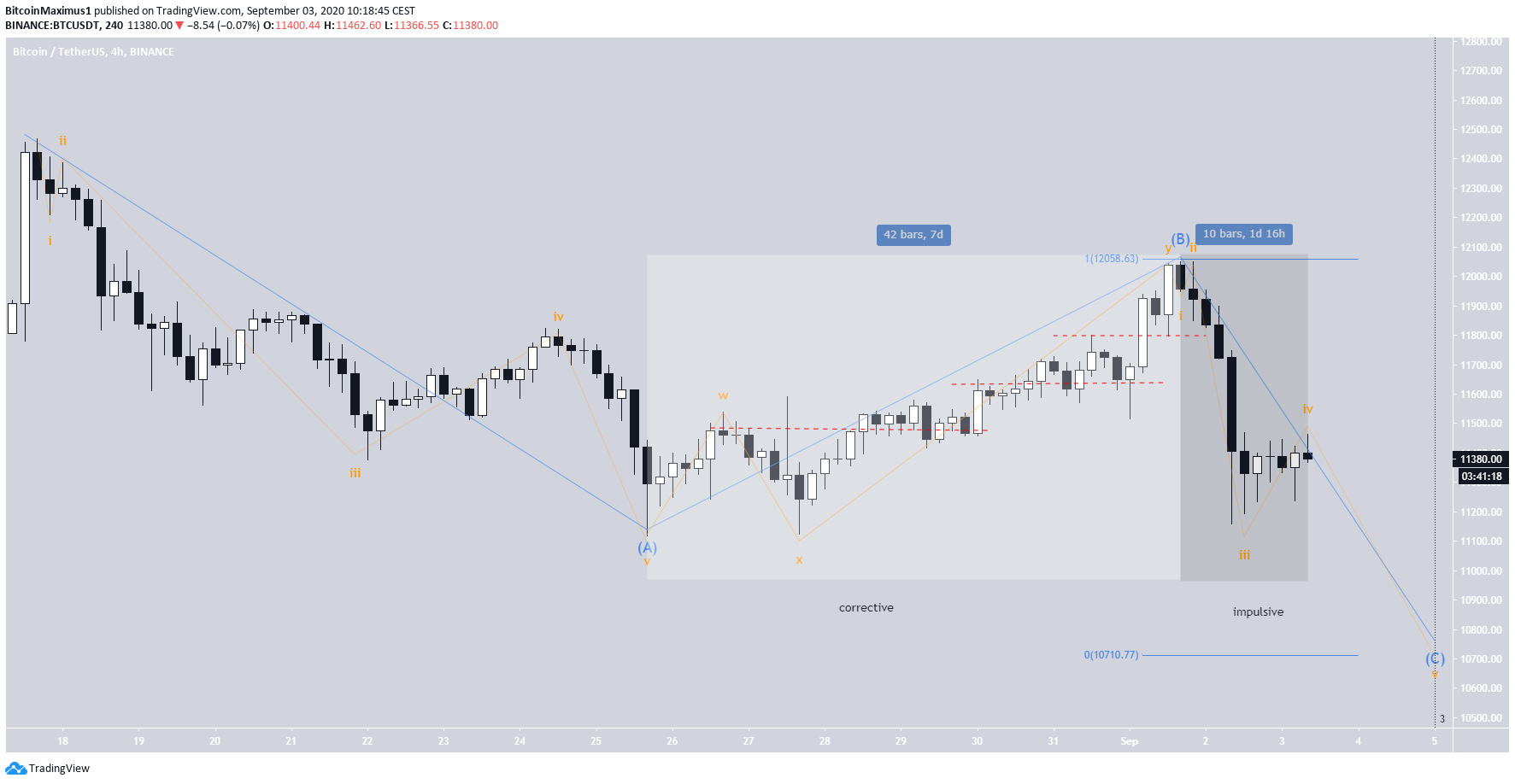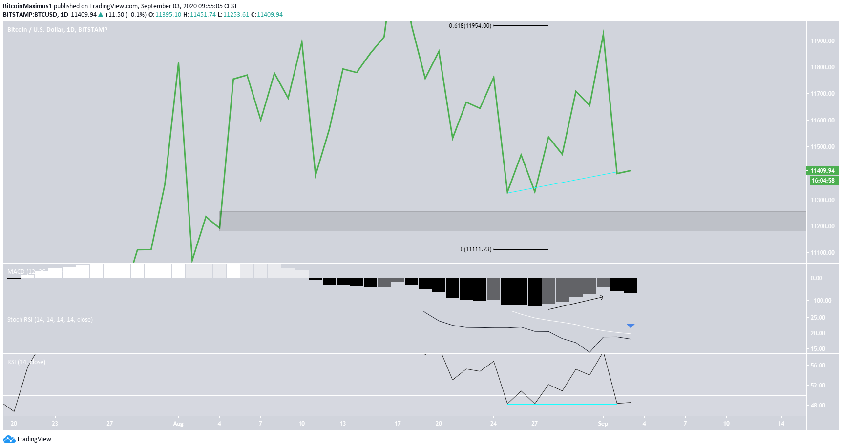 No dia 2 de setembro, o preço criou um candle de queda que o levou de volta à área de suporte de $ 11.200 mencionada anteriormente.