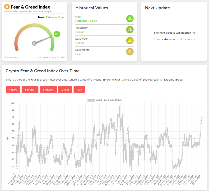 SponsoredO índice de medo e ganância está alto agora, comparado ao tempo em que ele existe (em um ciclo de baixa maior). Ainda veremos as altas que pode alcançar. No contexto de um potencial novo ciclo de alta, não creio que faça sentido usá-lo como motivo para temer uma grande liquidação.