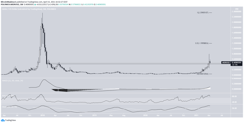 Durante a primeira semana de abril, a ARDR rompeu acima da resistência de US$ 0,435. A criptomoeda vinha sendo negociada abaixo desse valor desde abril de 2018.
