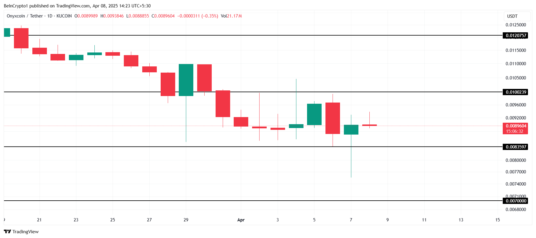 A Onyxcoin tem passado por um mês de consolidação com pouco impulso de alta, deixando o preço amplamente estagnado. A altcoin tem lutado para obter ganhos significativos, mas isso não desanimou investidores importantes.