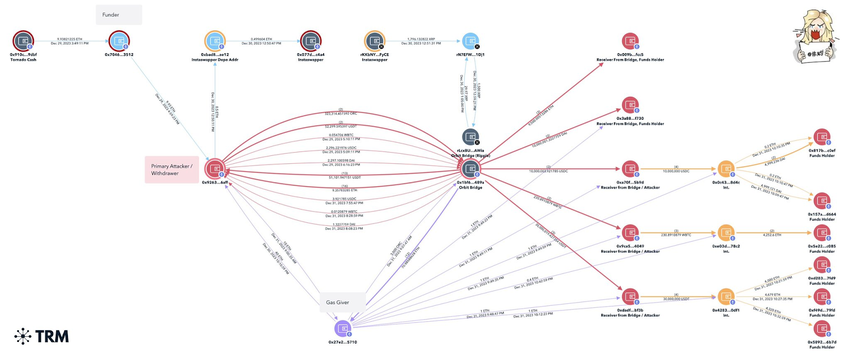 No total, os malfeitores roubaram ativos no valor de aproximadamente US$ 81,5 milhões. Além disso, os hackers financiaram suas novas carteiras por meio de depósitos da Tornado Cash.
