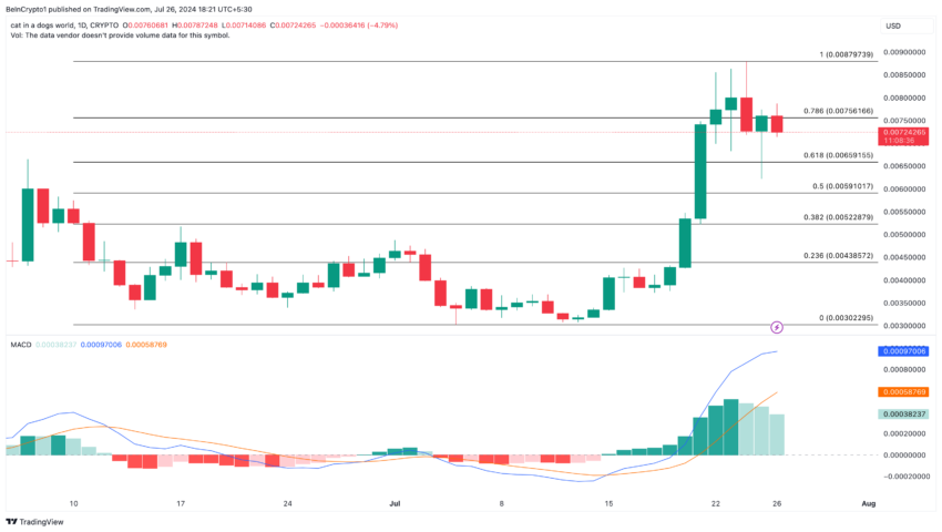 Sponsored SponsoredComo visto no gráfico acima, o MACD é positivo no gráfico diário. Portanto, se a pressão de compra retornar, o valor da criptomoeda poderá subir para US$ 0,0087 novamente. No entanto, se a realização de lucros aumentar, a previsão altista poderá ser invalidada, e a MEW poderá cair para US$ 0,0065.