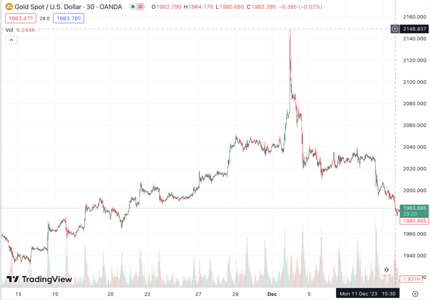 “Os investidores estão prestando mais atenção ao ouro porque não querem ser pegos de surpresa em 2024”, disse ele.