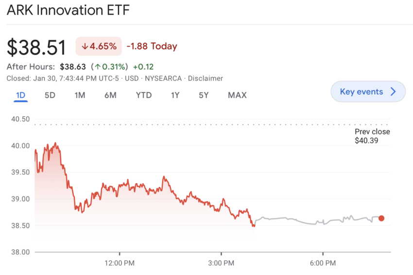 O Ark Innovation ETF (ARKK), que caiu hoje, continua no ritmo de seu melhor mês de todos os tempos, com um aumento de 25%. Isso serve como um lembrete da atual febre do mercado e destaca a atividade incomum vista até agora em janeiro.