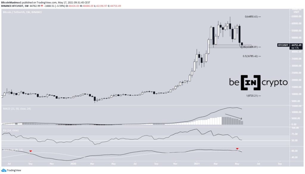 O BTC caiu consideravelmente na semana passada, despencando da máxima de US$ 59.500 para a mínima de US$ 43.825. Este foi o preço mais baixo da criptomoeda desde fevereiro deste ano.