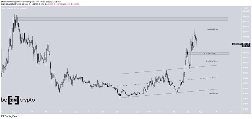 A ALICE saiu de um canal paralelo ascendente no dia 24 de julho. Depois, ela voltou para validá-lo como suporte (ícone verde) em na segunda-feira (27). Isso levou a uma alta de US$ 16,50, atingida na quinta-feira (29). Entretanto, a ALICE não conseguiu atingir a área de resistência de US$ 18,20 e começou a cair.