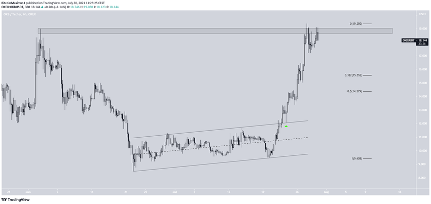 No entanto, o OKB foi rejeitado pela área de resistência de US$ 18,80, criando o que parece ser um padrão de topo duplo.