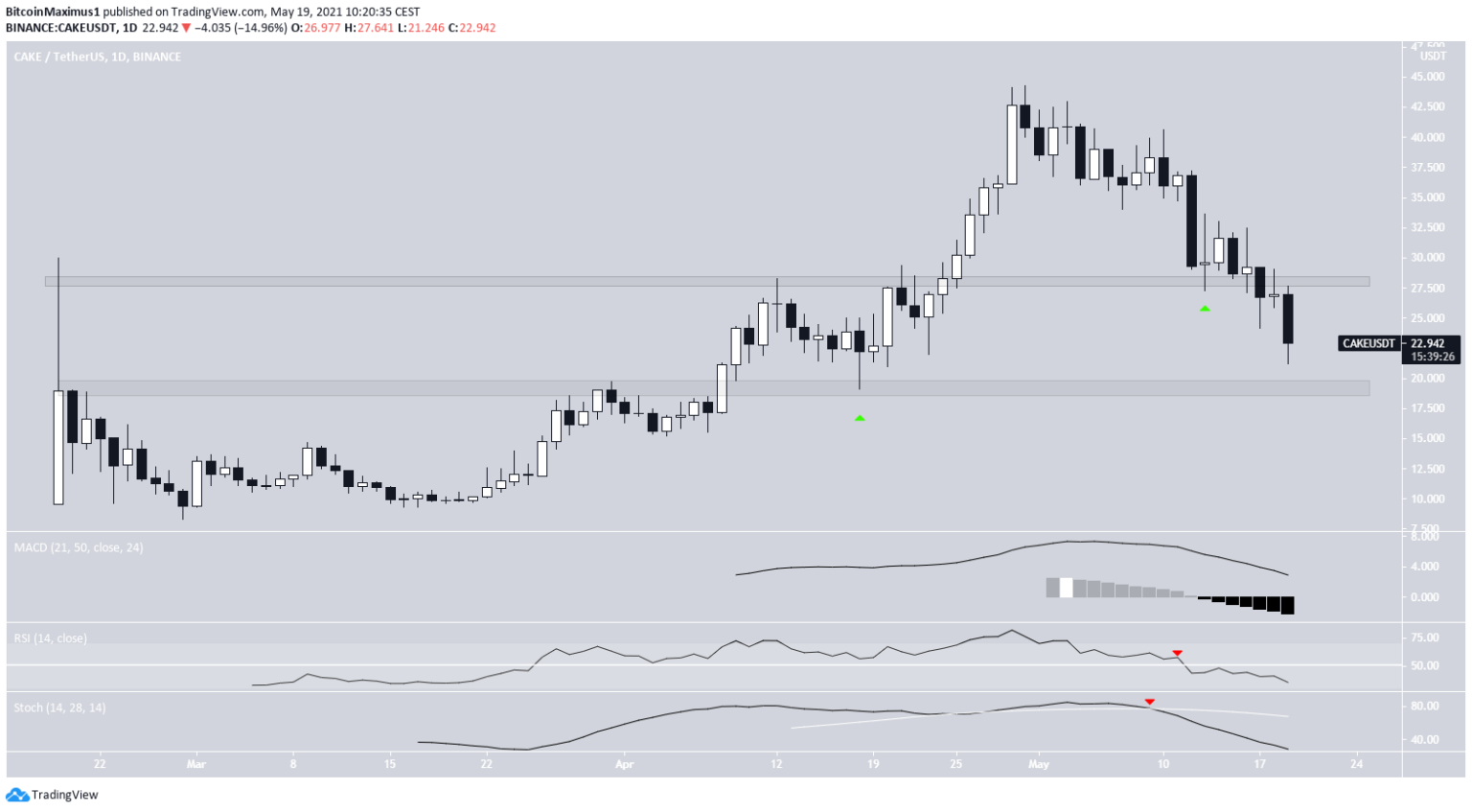 A PancakeSwap (CAKE) caiu abaixo da área de US$ 28 e está se aproximando do suporte de US$ 19.