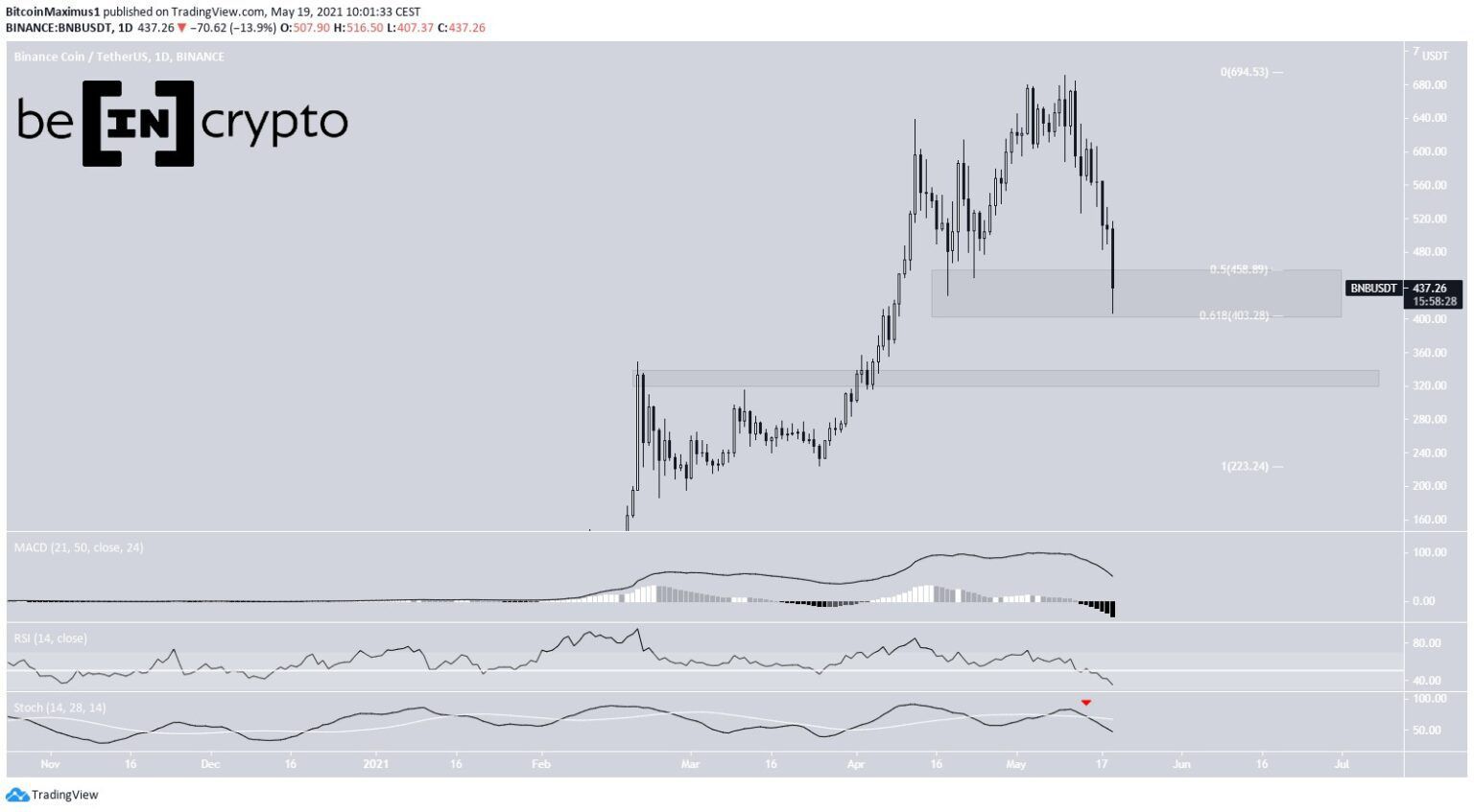 A Binance Coin (BNB) tem caindo desde que atingiu uma nova máxima histórica em US$ 691,77 no dia 10 de maio.