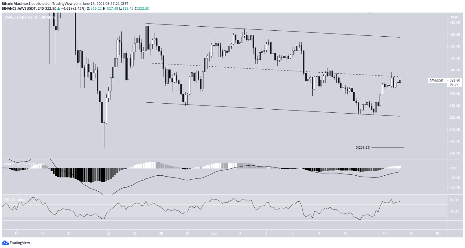 A AAVE iniciou um forte movimento de alta em 23 de maio, mas está em queda desde o dia 27. A baixa fez um canal de baixa, que geralmente contém movimentos corretivos.