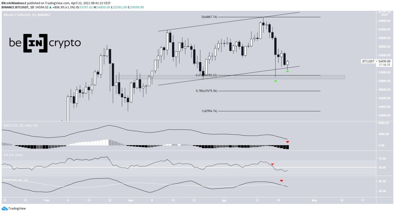O BTC está sendo negociado no fundo de um canal de alta. Isso geralmente indica um movimento de correção. Portanto, um rompimento pode ser o cenário mais provável.