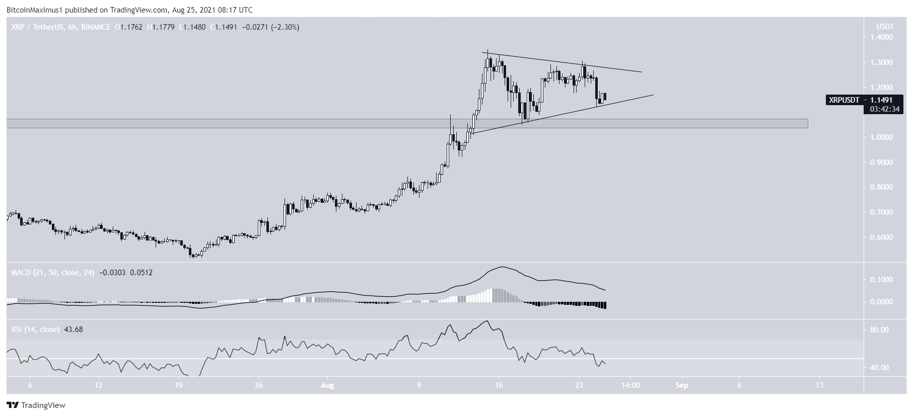 No dia 13 de agosto, a XRP ultrapassou a área horizontal de US$ 1,05, a validando como suporte logo em seguida.