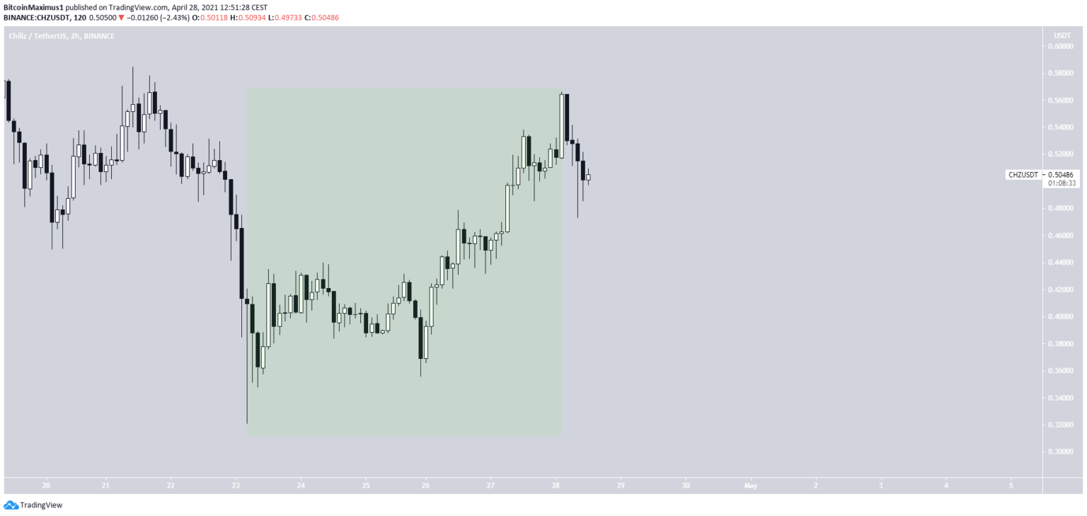 A CHZ foi listada em duas exchanges, a XT e Bitpanda Pro nos dias 25 e 27 de abril, respectivamente. É possível que esses dois eventos tenham ajudado no recente aumento de preços.