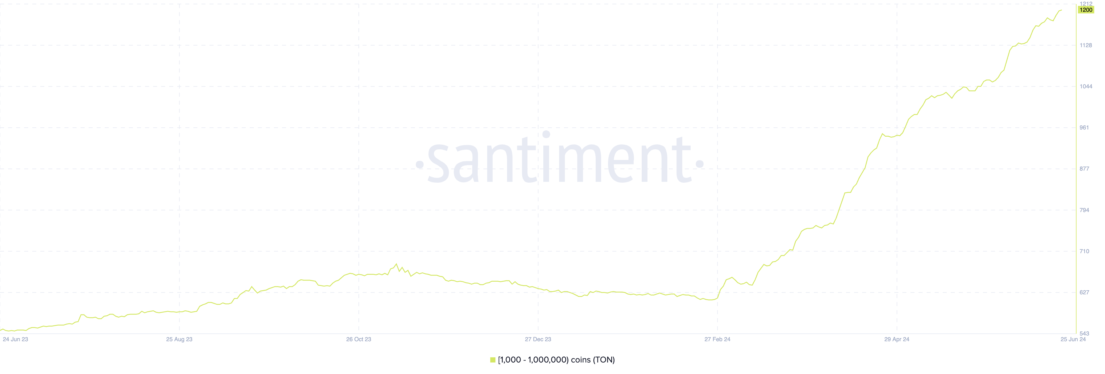Uma avaliação on-chain da atividade das baleias da Toncoin revelou um aumento no último mês. A contagem de baleias TON que possuem entre 1.000 e 1.000.000 de moedas aumentou inesperadamente em 15% nos últimos 30 dias.