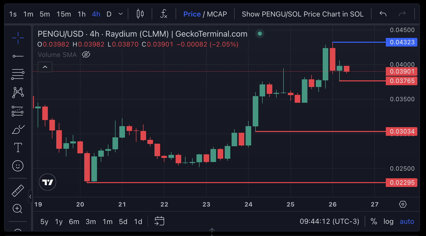 Se a atual tendência de alta continuar, o preço da PENGU pode em breve testar US$ 0,43, um nível chave que pode abrir caminho para novos ganhos.