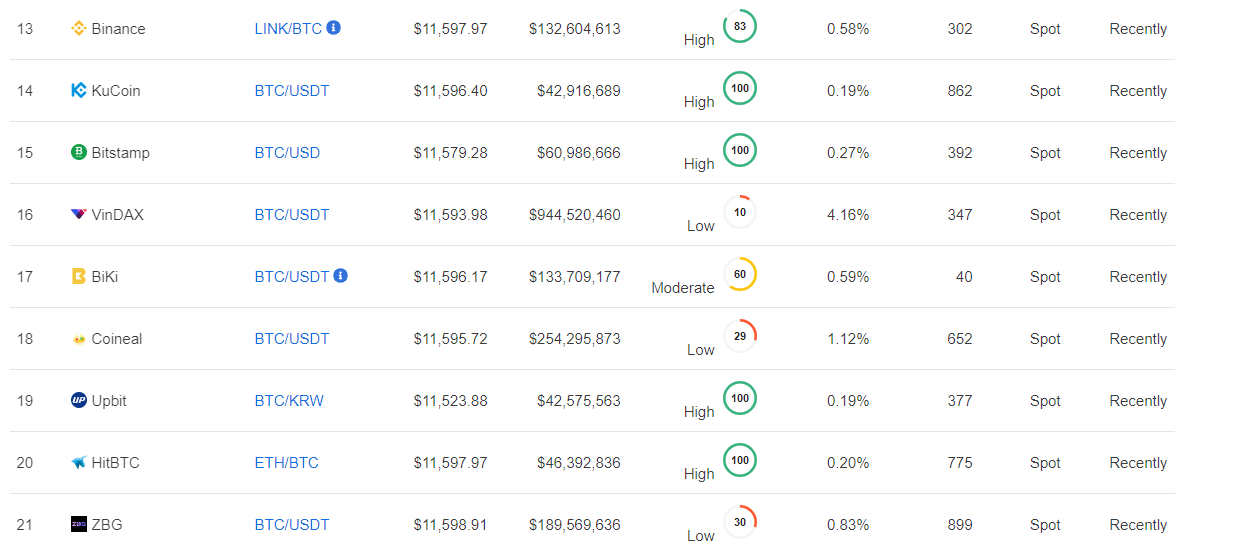 SponsoredVolumes de negociação maiores classificam as exchanges em posições mais altas na lista de sites como CoinGecko e CoinMarketCap. A classificação mais alta traz mais tráfego. O CoinMarketCap usa seu próprio algoritmo para abordar a validade e confiabilidade dos volumes de negociação publicados e liquidez.