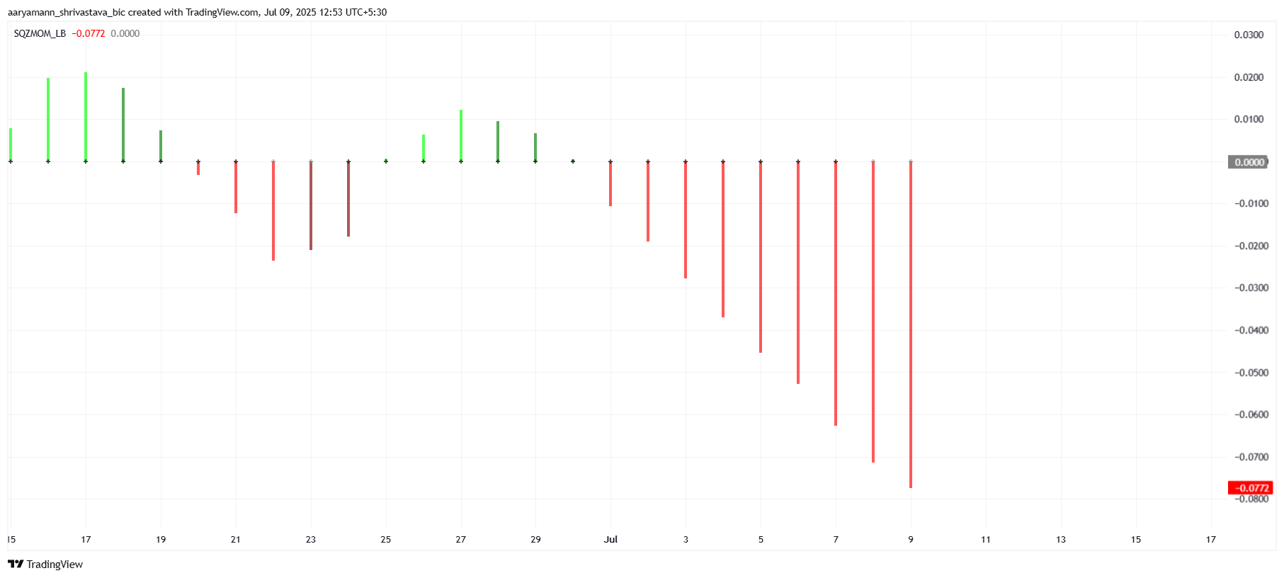Esse evento geralmente sinaliza um grande movimento de preço, mas no caso da Pi Coin, a presença de barras vermelhas no indicador sugere uma continuação do momento de baixa. O squeeze release pode indicar mais quedas, em vez de uma recuperação imediata.