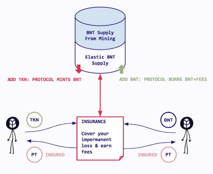 “Usando um fornecimento elástico de BNT, o protocolo co-investe em pools ao lado de LPs e cobre o custo de perda impermanente com taxas de swap ganhas de seus co-investimentos.”