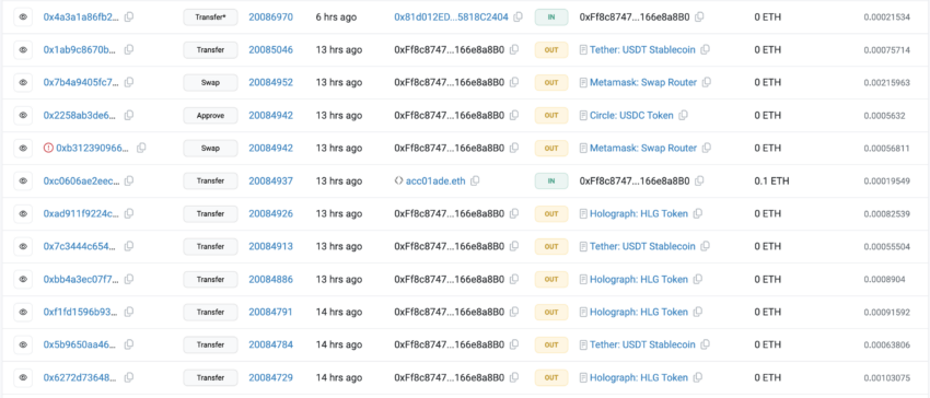 Conforme os dados do BeInCrypto, a HLG está sendo negociada a US$ 0,00708 quando este artigo foi escrito. A capitalização de mercado do ativo diminuiu para US$ 10,7 milhões. Aos preços atuais, as moedas emitidas pelo hacker valem cerca de US$ 7,1 milhões. No entanto, quatro horas após o ataque, ele converteu os tokens em Tether (USDT), o que lhe permitiu sacar muito mais dinheiro.