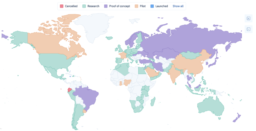 Os CBDCs também podem oferecer benefícios como pagamentos mais rápidos e eficientes, maior segurança e transparência e melhor transmissão da política monetária. Em colaboração com instituições bancárias, algumas regiões já lançaram programas piloto ou planejam lançar CBDCs em breve. Exemplos de países que lançaram programas piloto de CBDC incluem China, Suécia e Bahamas. Outros países como Estados Unidos, União Européia e Japão ainda estão em fase de exploração/pesquisa.