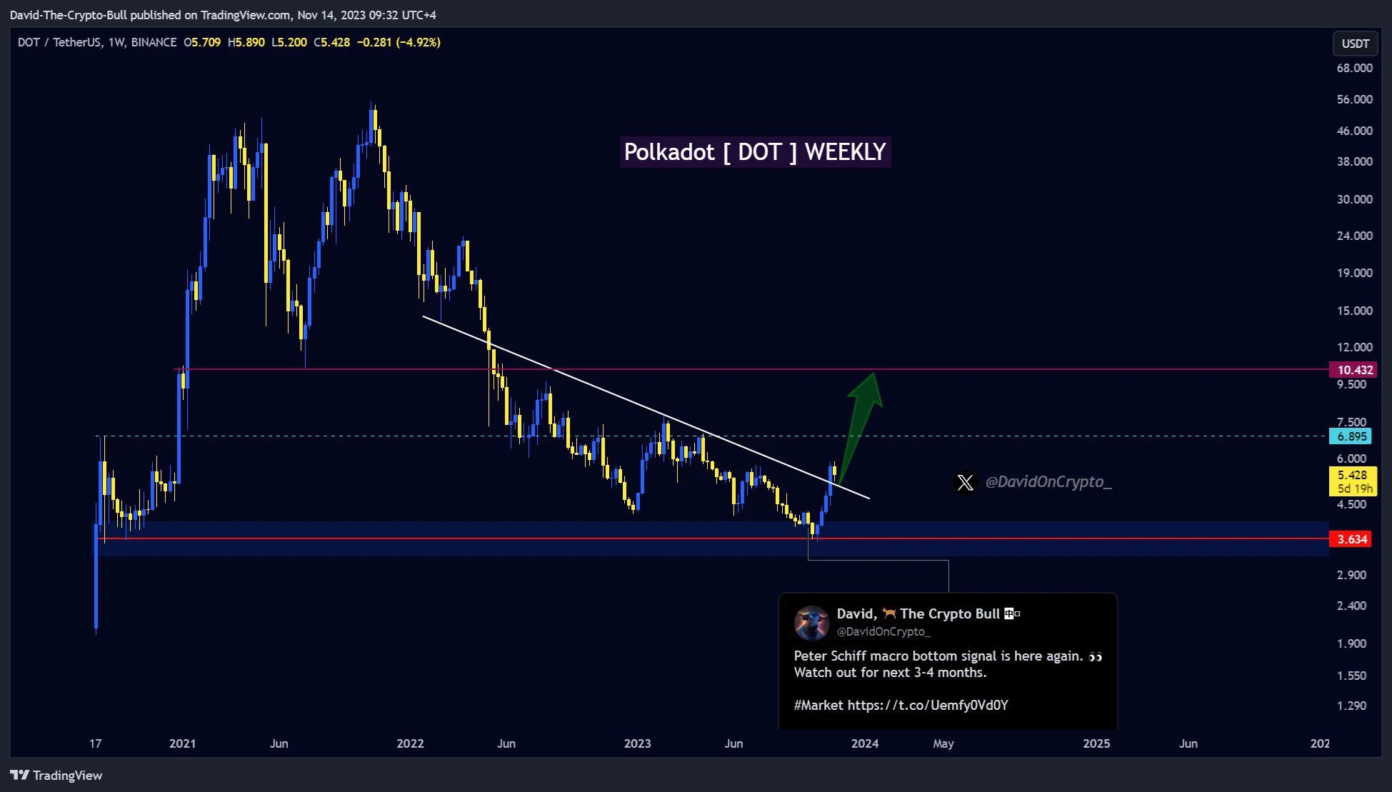 Sponsored SponsoredSe essa contagem estiver correta, sinaliza agora o início de um novo movimento na direção oposta. Ainda não se sabe se isso marca o início de uma reversão da tendência ou uma correção, mas ambos os cenários antecipam um salto significativo no preço da DOT.
