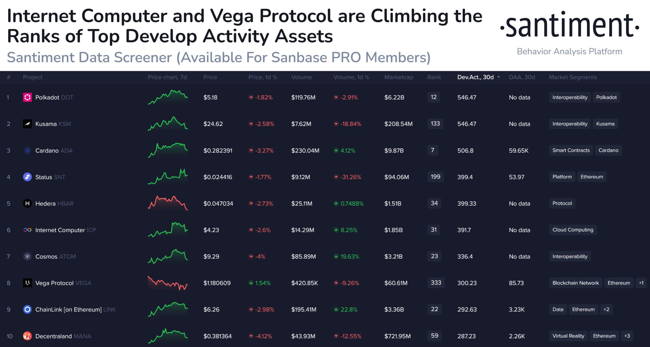 Nesta quinta-feira (6), a plataforma de análises blockchain Santiment publicou sua mais recente lista de atividades de desenvolvimento de criptomoedas, e houve alguns resultados surpreendentes.