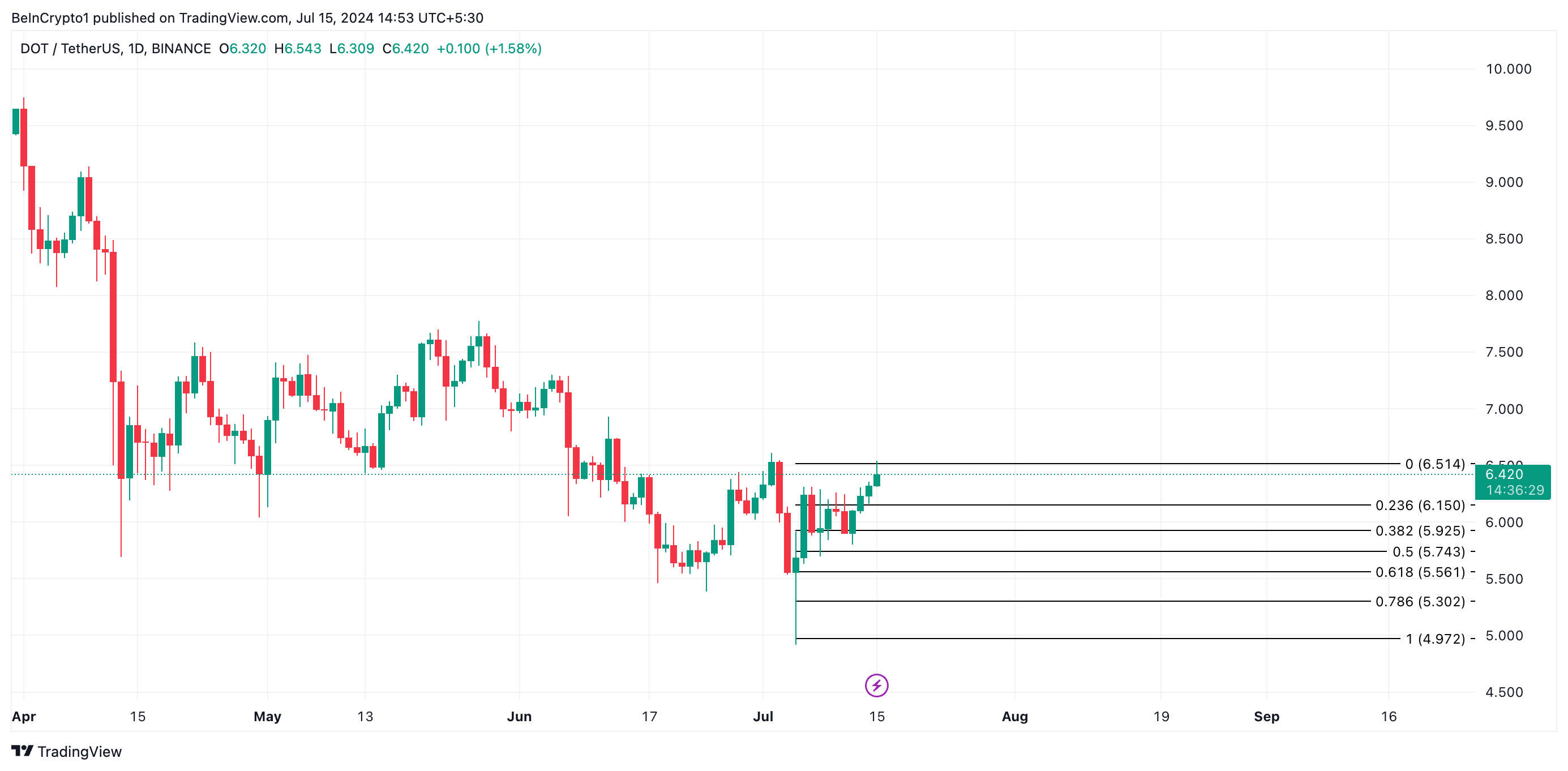 O Polkadot rompeu essa linha superior no sábado (13) e, desde então, tem mantido sua tendência de alta.